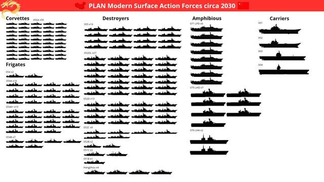 而且,这份中国海军的阵容图存在一些明显的错误,中国海军的054A型护卫舰总数早就超过了图中所示的数字,且新一批次的054A已经有多艘下水,到了2030年,中国海军的护卫舰舰队规模是要大于外界推测规模的。